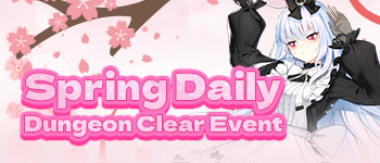 Spring Daily Dungeon Clear Event Spring brings rewards for daily dungeon clears! Event Period After maintenance on April 15, 2026 - Before maintenance on April 29, 2026 UTC Spring Event resets daily, making it possible to earn more rewards every day! Dungeon Clear Count Item Name 3 x1 Splendid Tunin