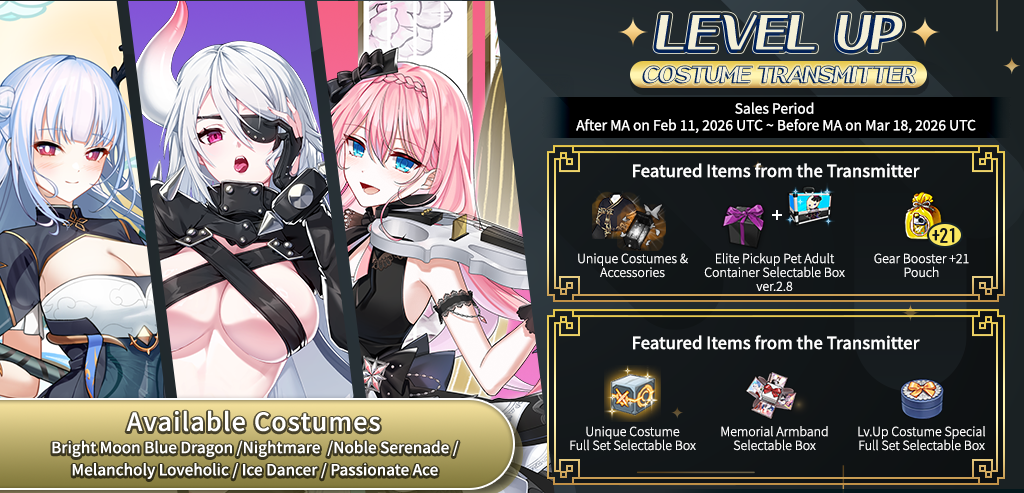 Lv.Up Costume Normal Full Set Selectable Box | Lv.Up Special Full Set Selectable Box | Memorial Armband Selectable Box |