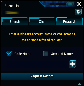Friend Tab | Chat Tab | Request Tab |