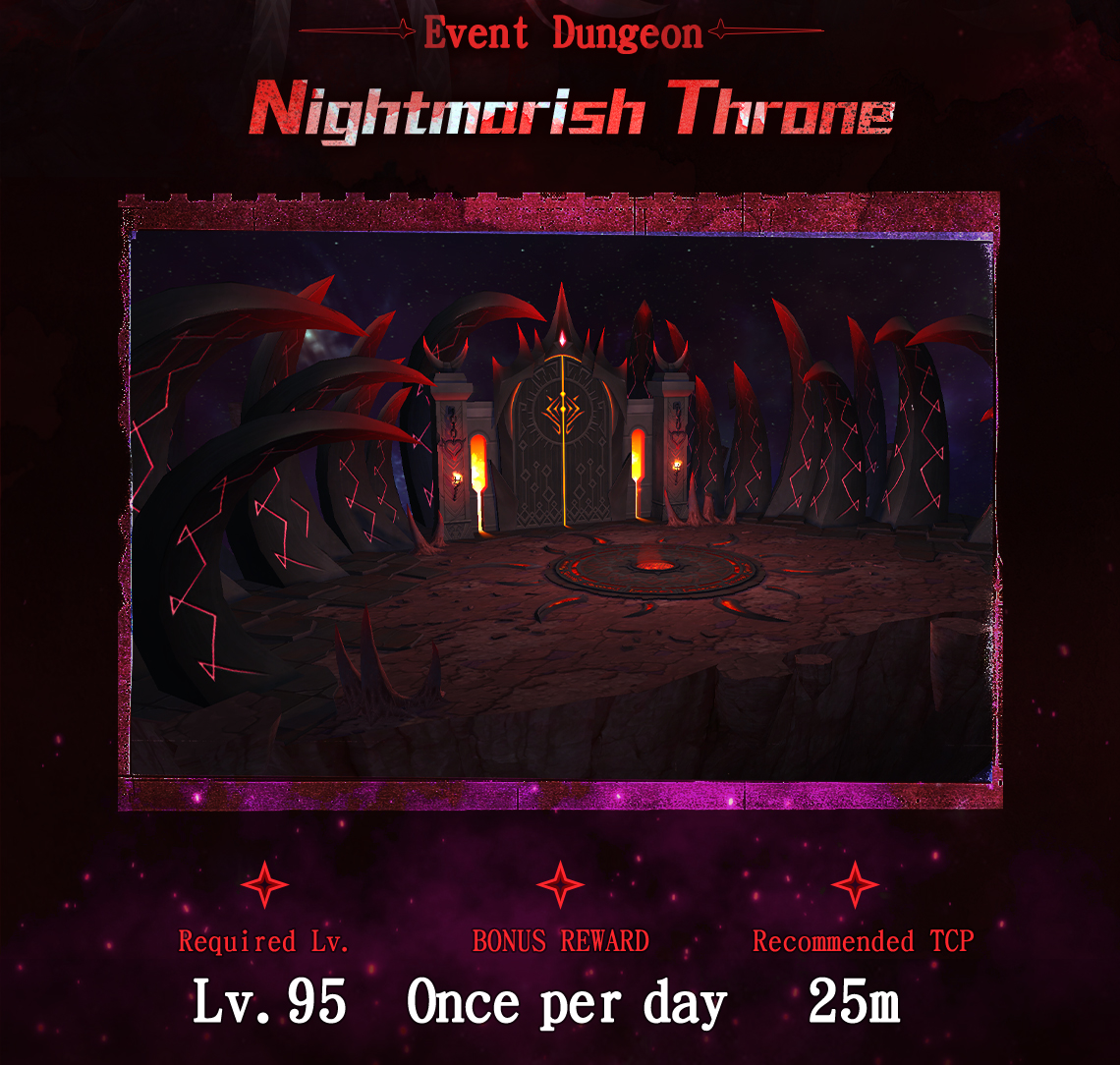 Nightmarish Throne | Once per character per day | 95 | 25,000,000 | 1~4 | 160 | 20 |