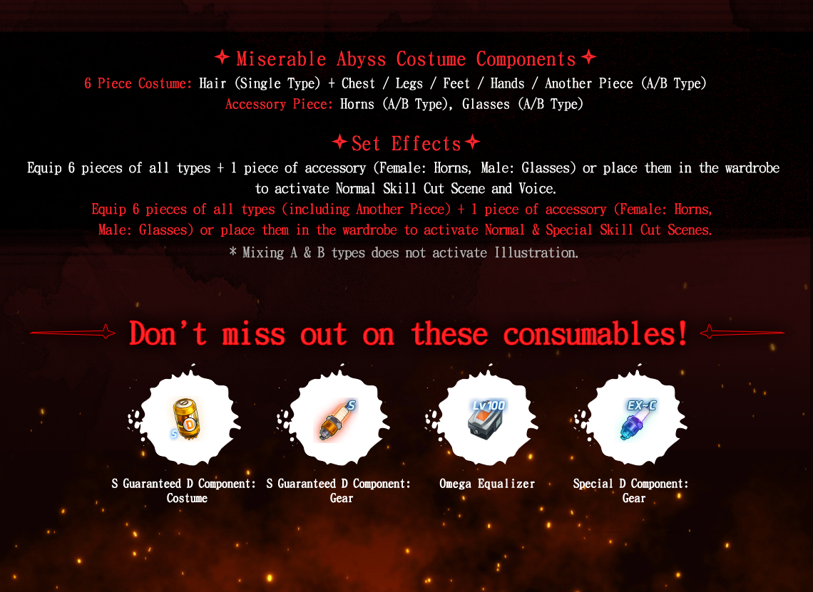 Miserable Abyss Horns [B Type] | 1 | Once per Character | 5,000,000 | 5 | No | - | Cannot Repackage |
