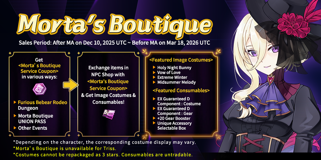x1 Morta's Boutique My character Piece Selectable Box | - | 12/31/2026 | 20 |