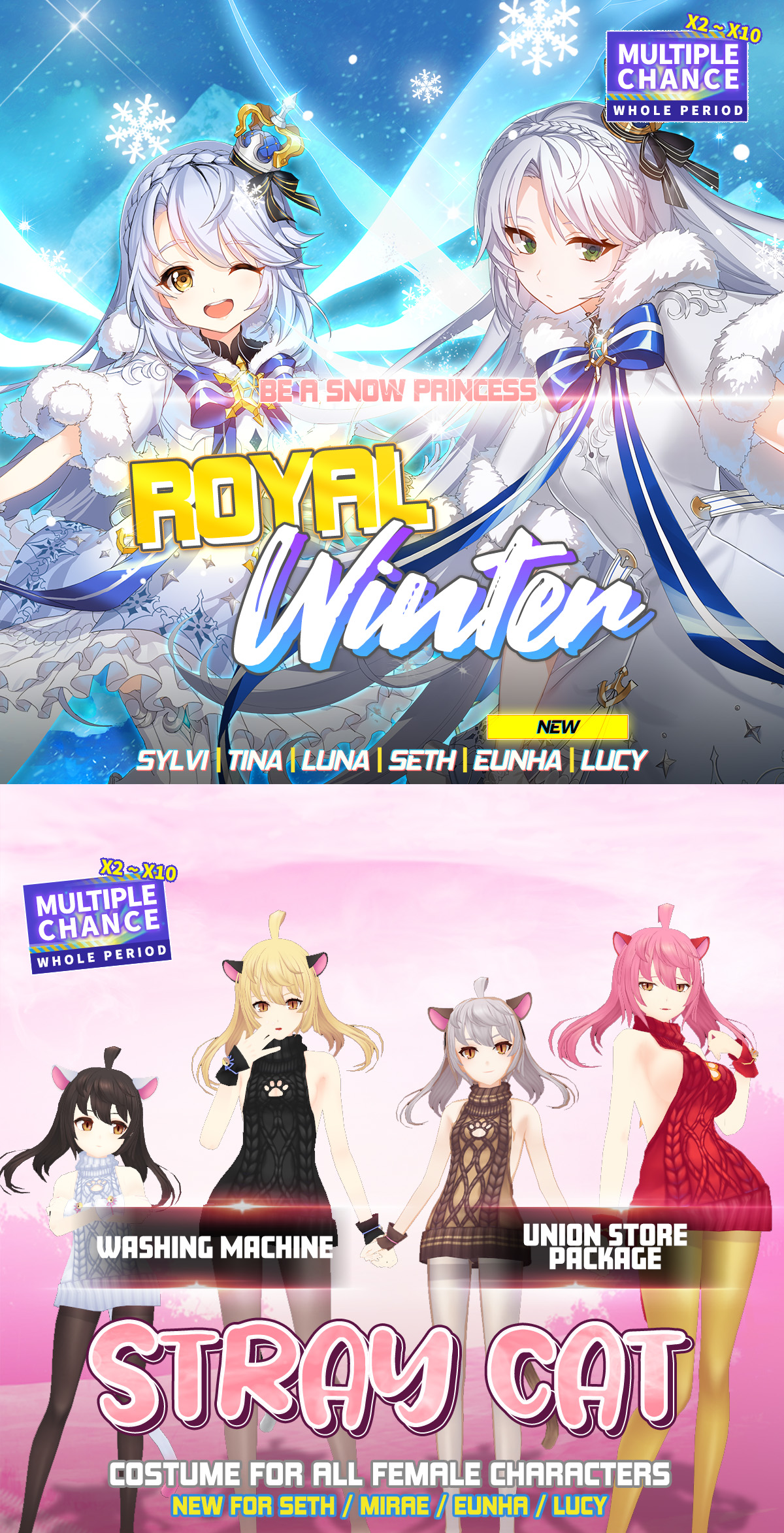 Look magnificent during the snowy season with Royal Winter or get cozy with your Stray Cat costume while sipping on hot choco.