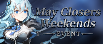MAY Closers Weekend Enjoy Closers Weekend twice this month! Event Period Week Start (UTC) End (UTC) 1st May 2, 2026 at 4:00 AM May 3, 2026 at 3:59 AM 2nd May 9, 2026 at 4:00 AM May 10, 2026 at 3:59 AM ▶ Login Event Receive event rewards the moment you log-in to Closers during the event period! Acqui