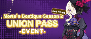 Morta’s Boutique UNION Pass A fresh season phase begins with new mission and rewards! Event Period After maintenance on April 15, 2026 - Before maintenance on May 13, 2026 UTC Morta’s Boutique Pass Reset Mission Count Free pt Premium Special Daily Dungeon Clear 1 8 None None Daily Dungeon Clear 2 10