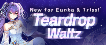 Teardrop WaltzNew for Eunha & Triss A delicate yet powerful waltz enters the battlefield, weaving beauty into every attack! Sales Period After maintenance on April 15, 2026 - Before maintenance on May 27, 2026 UTC Sale Method Character Washing Machine (Sylvi, Yoon Ria, Violet, Triss, Bai, Mirae, Eun