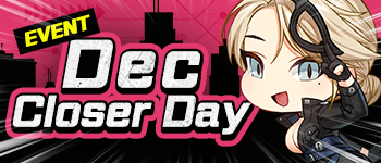 December Closers Day Event A special event for this month where you could get item rewards and buffs! Event Period December 6, 2025 at 4:00 AM - December 7, 2025 at 3:59 AM UTC ▶ Login Event Receive event rewards the moment you log-in to Closers during the event period! Acquire these event items onc
